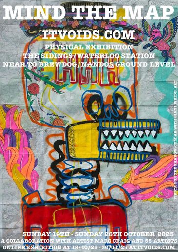 Mind the Map - a landmark collaborative exhibition, which was curated by Marc Craig https://marccraig.co.uk/. In his words "Maps have always fascinated me. They are at once practical and deeply symbolic - they tell us not just where we are, but also who we are. With MIND THE MAP, I invited dozens of artists to navigate those lines, borders and territories in their own way. What emerged is an atlas of human creativity."