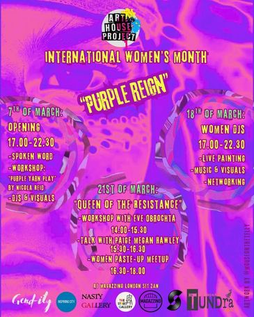 This month long immersive exhibition explores gender equality and expression through the symbolic force of purple, showcasing powerful works by 20+ national and international artists across visual art, photography, sculpture, music and live visuals.